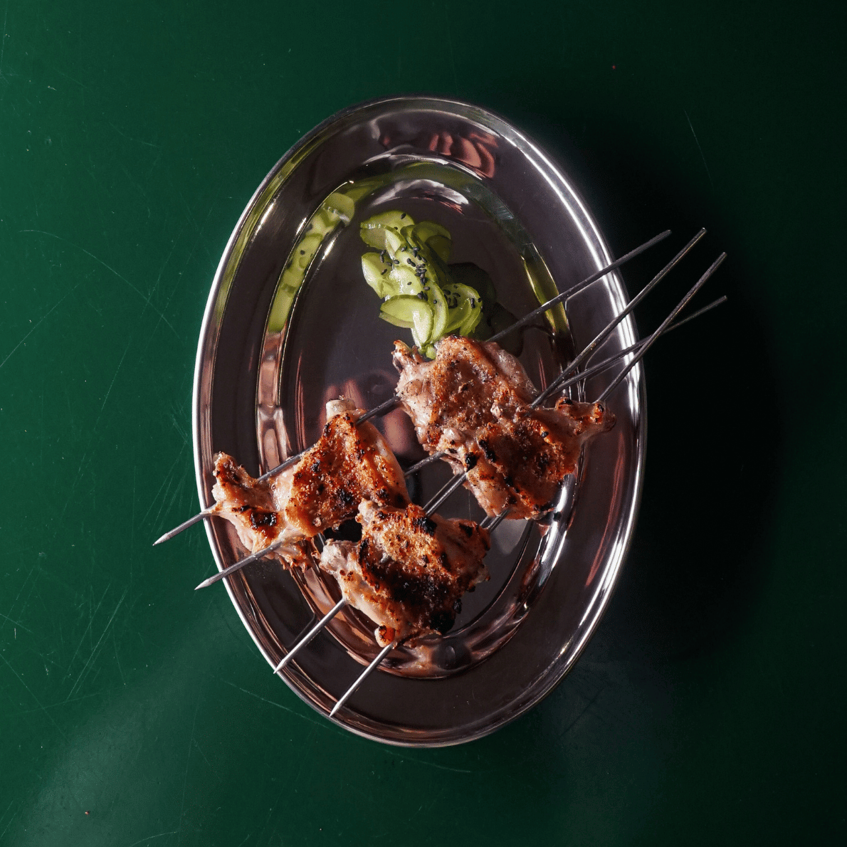 Crispy salt and pepper chicken wings (6 pcs) served with quick-pickled cucumber and a squeeze of lemon.